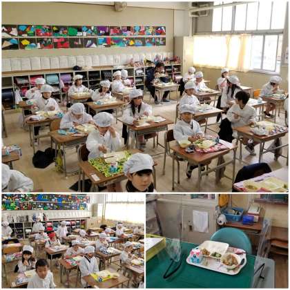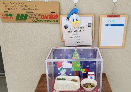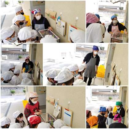 給食室前では、おいしいきゅうりの選び方が紹介されていました。