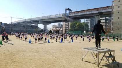 しっかりと準備運動をした後は、みんなで、なわとび運動です!