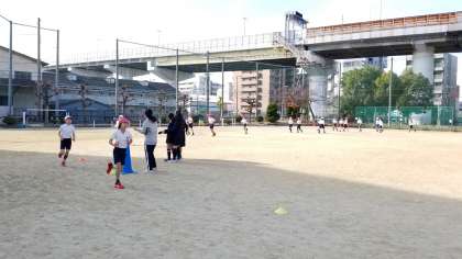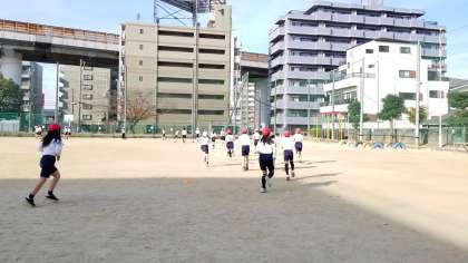 体育科の時間に、4年生が「10分間走」をしています。