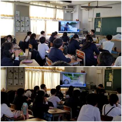 交通安全についてのDVDを見ながら、正しい歩行や自転車の乗り方について学習しています。