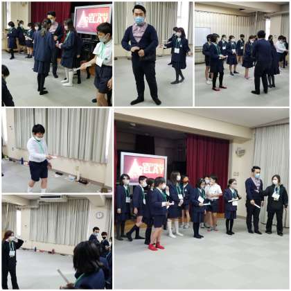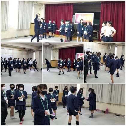 英語の時間に、クリスマスに関する単語を言いながらゲームをしています。