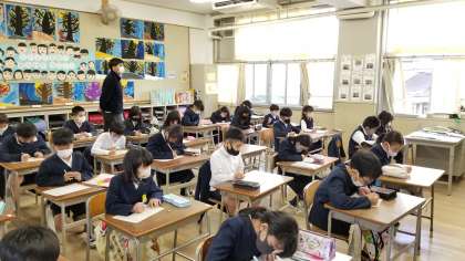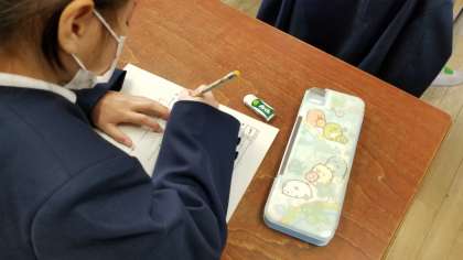 国語科の学習で、聞き取りテストをしています。