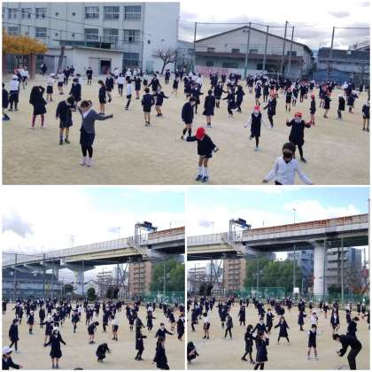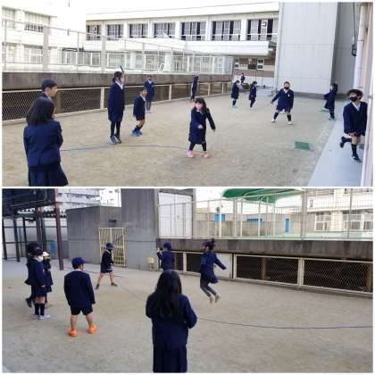 休み時間には、クラスの友達と誘い合って大縄跳びを楽しんでいます。