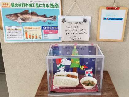 展示食横に掲示されている、タラの紹介文にみんな興味津々です。