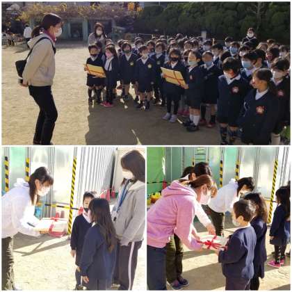 1年生が、瓜破北幼稚園の園児さん全員に「1月のカレンダー」をプレゼントしました。