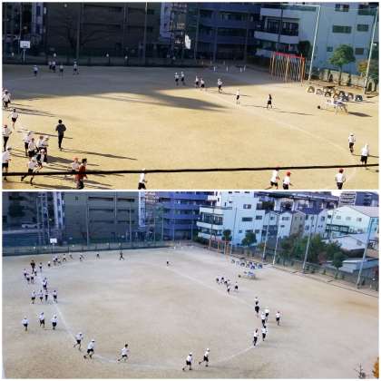 屋外運動クラブは、音楽に合わせて持久走をしています。