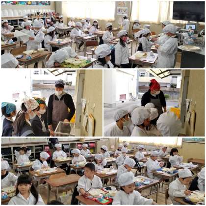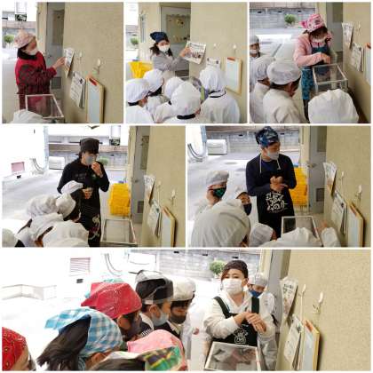 教職室前に掲示されていた「干しずいき」の説明を、子ども達だけでなく、先生も興味津々で読んでいました。