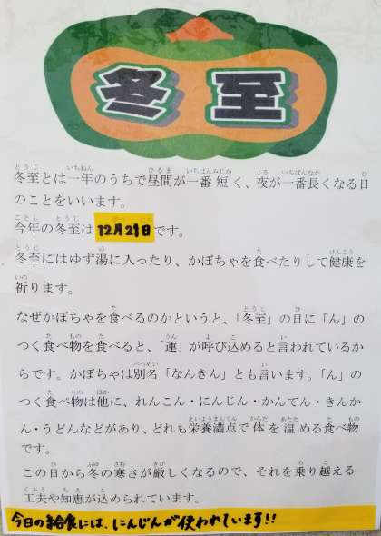 【冬至】について、先生と子ども達はいろいろと話をしていました。