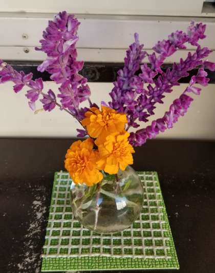 管理作業員室の前には、かわいらしい花がいつも生けられています。