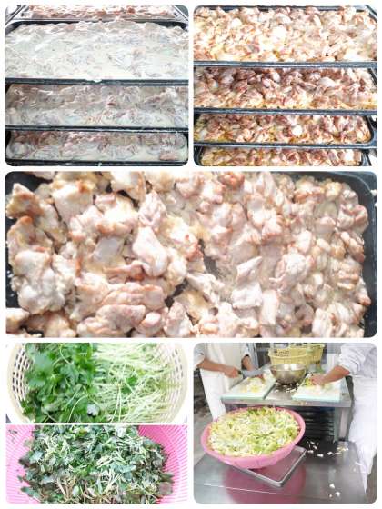 鶏肉のしょうゆマヨネーズ焼きは、鶏肉(もも)にマヨネーズ・塩・料理酒・こいくちしょうゆで味をつけ焼きもの機で焼いています。マヨネーズのおかげでジューシーな鶏肉