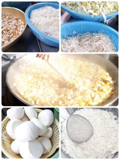 五目汁は、かまぼこ・うすあげ・はくさい・だいこん・にんじん・えのきたけ・みつばと具だくさんでした。