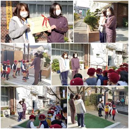 先日、1年生が瓜破北幼稚園の園児さんに「1月のカレンダー」をプレゼントしました。