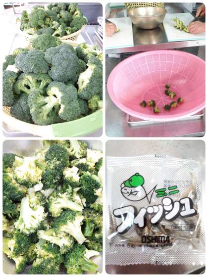 今日の献立は、ビーフシチュー・ブロッコリーのサラダ・ミニフィッシュ・黒糖パン・牛乳でした。