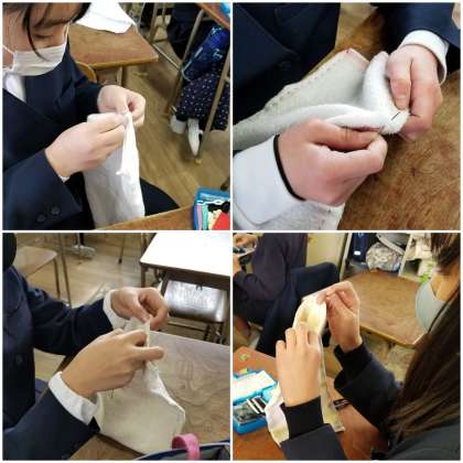 卒業記念に在校生へ送る「雑巾」制作です。