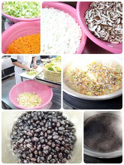 黒豆の煮ものは、乾燥している黒豆を熱湯でひたした後、じっくりコトコト煮ています。