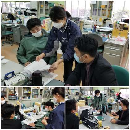 C-NETと担任が、英語の授業の打ち合わせをしています。