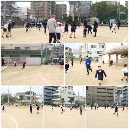 昼休みの運動場は、子ども達だけでなく先生も元気いっぱいに遊んでいます!
