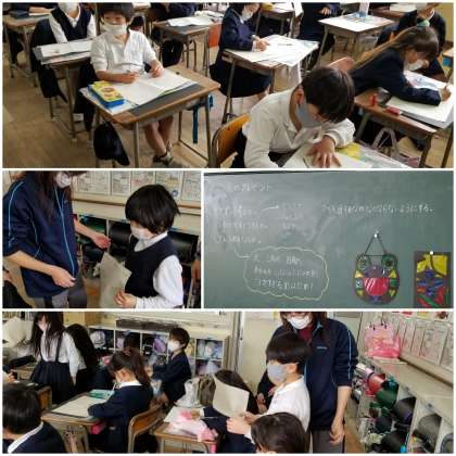 先生の見本を見て、アイデアを膨らませる子ども達。