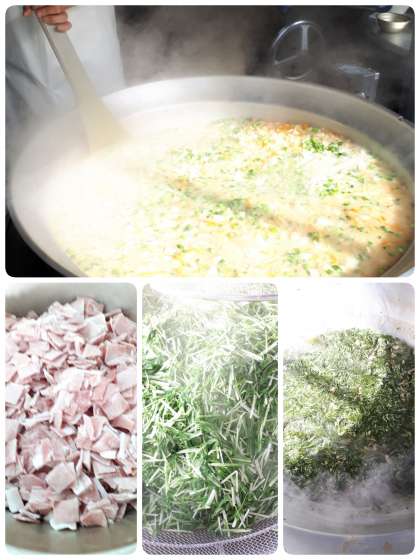 みずなは、年に1回給食に登場する野菜で、児童が食べやすいように豚肉と一緒に煮びたしにしています。