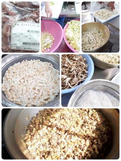 2月に1回登場する近江牛を使用したすき焼き煮で、ふ・糸こんにゃく・とうふ・はくさい・白ねぎ・まいたけを一緒に煮ています。