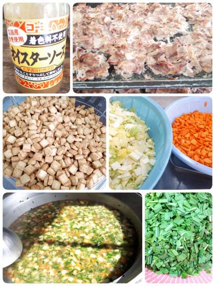 あつあげとだいこんの煮ものは、あつあげ・だいこん・はくさい・たまねぎ・にんじん・にらを使用し、でんぷんでとろみをつけた中華風の煮ものです。