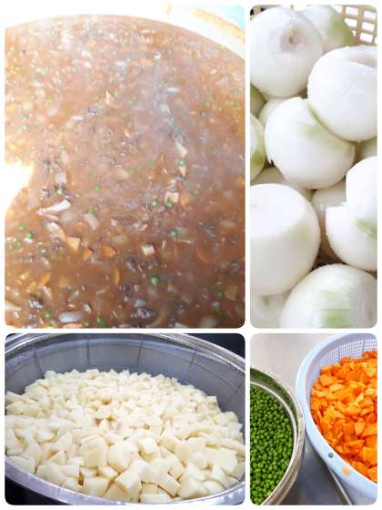 具材をいため、ブラウンルウやデミグラスソースなどでじっくり煮こんで仕上げています。児童に大人気の献立です!