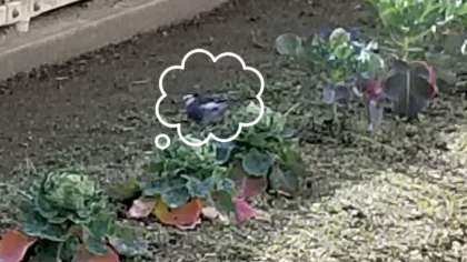 栽培委員会が育てている野菜の葉を食べに、かわいいお客様がやってきています。