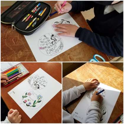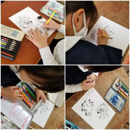 新1年生にプレゼントする首飾りを作っています。