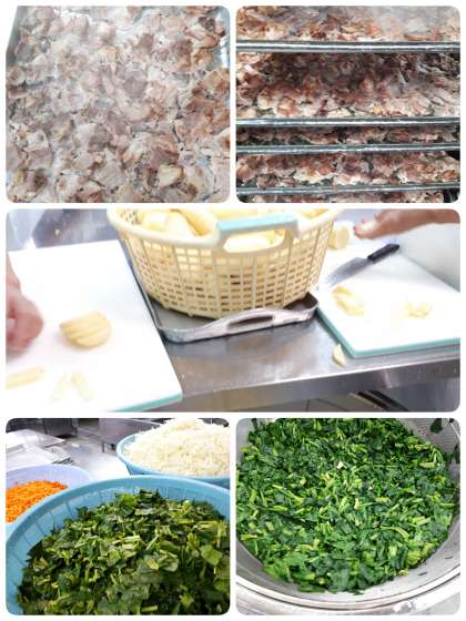 スープは、鶏肉・にんじん・たまねぎ・じゃがいも・ほうれんそうを使用し、彩りのよいスープです。