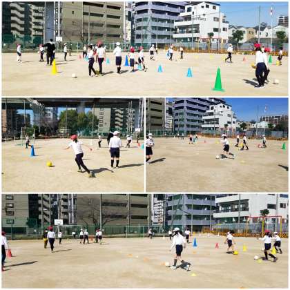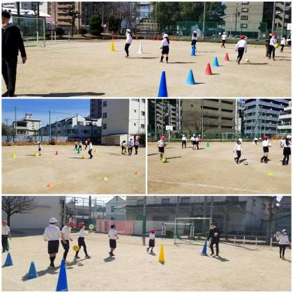 体育科の学習で、ボールを使った運動に取り組んでいます。