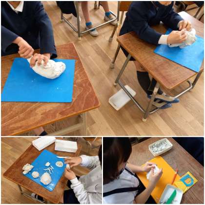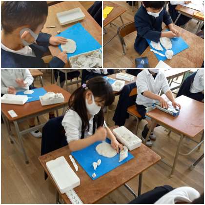 力いっぱい、粘土をこねています。
