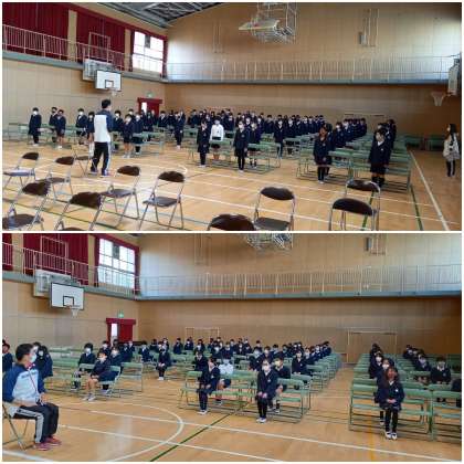 今日は、19日(金)の第52回卒業証書授与式に向けて、予行を行いました。