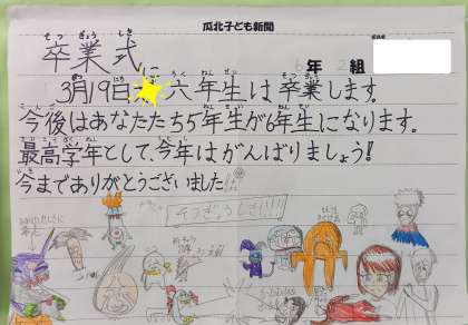 1〜5年生の人は、お祝いの気持ちをもって、お家で過ごしてくださいね。