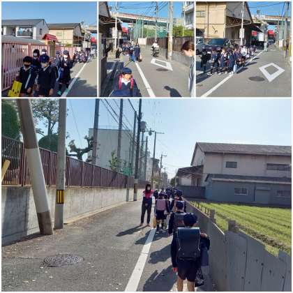 登校の際は、教職員が通学路で子ども達を迎えています。