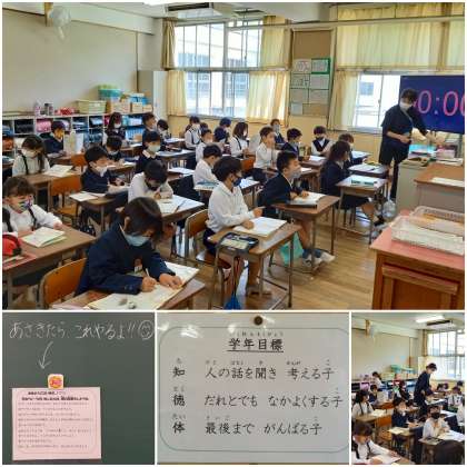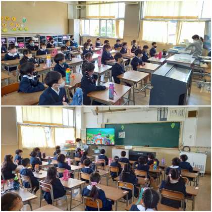 1年生は、学校生活の様子をわかりやすく説明している視聴覚教材を見ています。