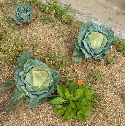 チョウチョの大好きなキャベツが大きく生っています。