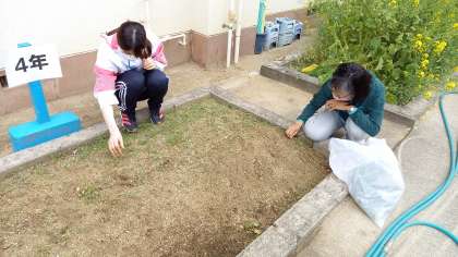 雑草を抜いている教員の姿も見られました。