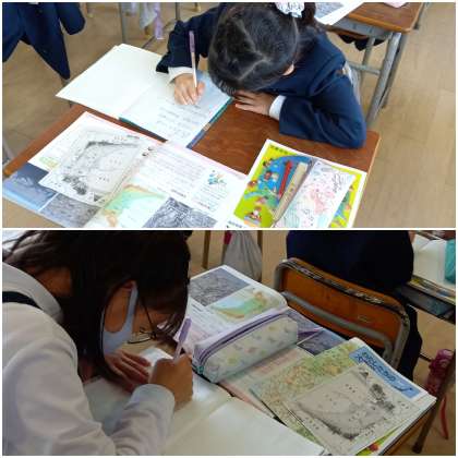 教科書や地図帳を使って、地域の特徴をまとめています。