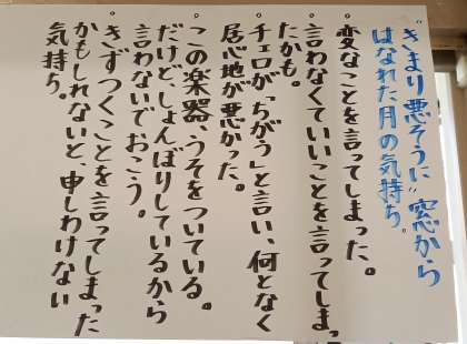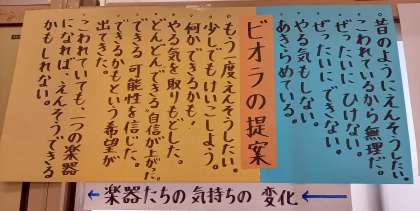 物語に登場する「楽器」の気持ちの変化について考えています。