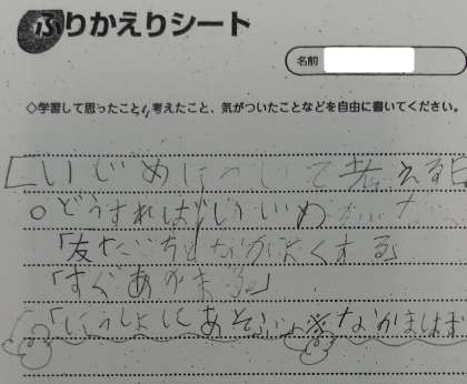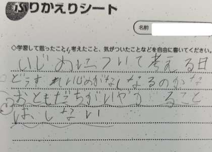 子ども達は、「どうすればいじめがなくなるのか」について考えました。