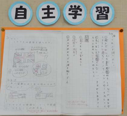 自主学習ノートが掲示されています。