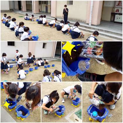 1年生が、生活科の学習で「アサガオの種まき」をしました。