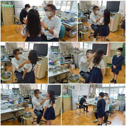 学校医の先生に、全校児童が耳鼻科検診をしていただきました。