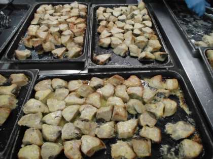 かつおのガーリックマヨネーズ焼きは、にんにく・塩・白こしょう・マヨネーズで下味をつけ、焼き物機で焼いています。