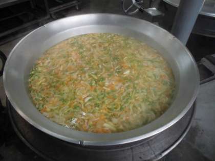 スープは、ベーコンで旨みを出し、じゃがいも・たまねぎ・にんじん・グリンピースを使用しています。