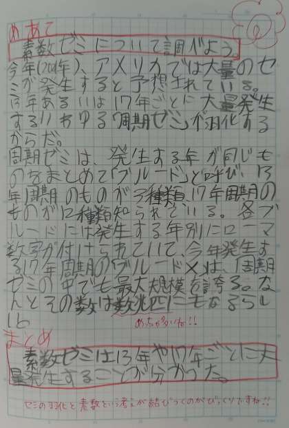 その話を聞いた子どもが、自主学習で素数蝉について調べました。