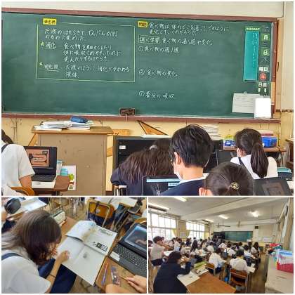 1人1台学習者用端末を使って、「食べ物の通り道や変化」について調べています。
