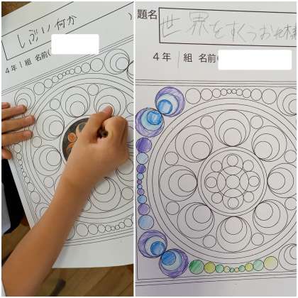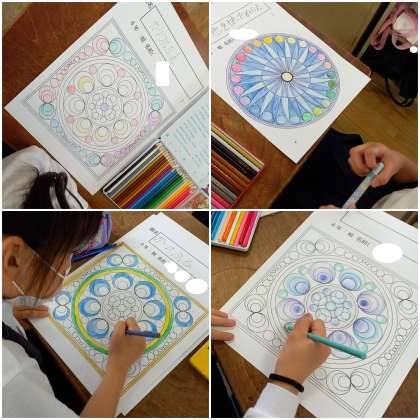 2種類の模様を、色鉛筆を使ってステキに変身させています。