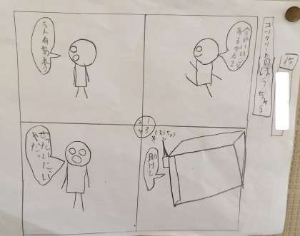 子どもが、学級を楽しくしようと自作のマンガを掲示しています。