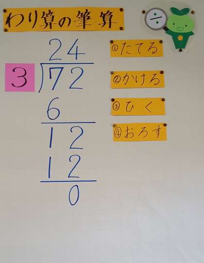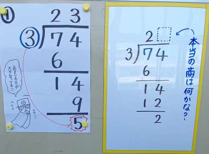 子ども達が、楽しみながらわり算の筆算に取り組めるように工夫しています。